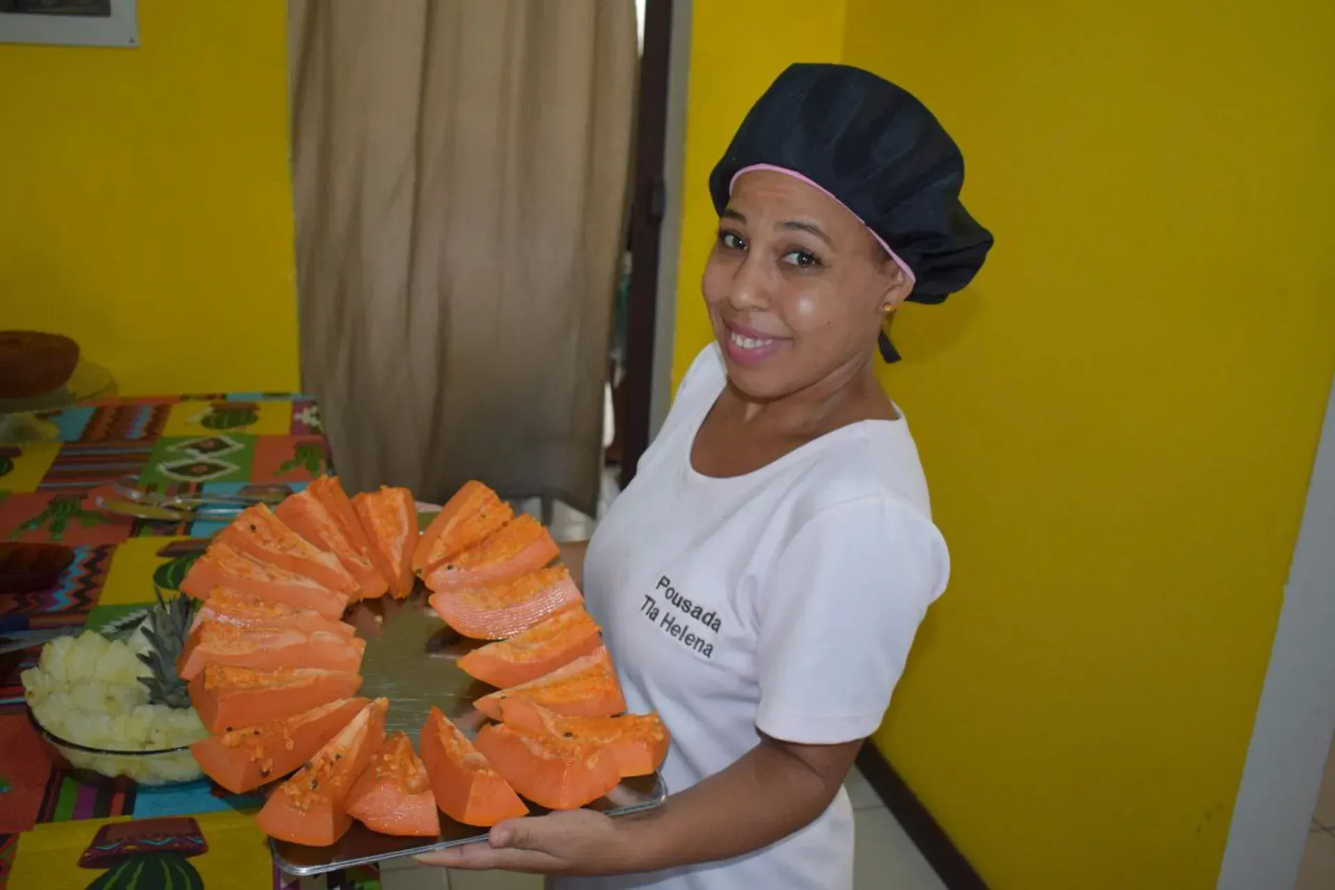 Aqui na Pousada Tia Helena na Praia do Forte Bahia você conta em sua diária com um delicioso café da manhã com frutas, sucos, pães, frios, e claro com nossas delícias regionais como, tapioca, carne seca, entre outras delícias que você só encontra aqui no nordeste brasileiro.